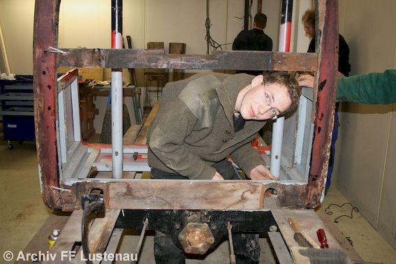 27.01.2010 | Unsere Senioren bei der Präsentation des Fahrzeuges für unsere Feuerwehrleute. Sie sind auf dem Originalfahrzeug gefahren. |  |